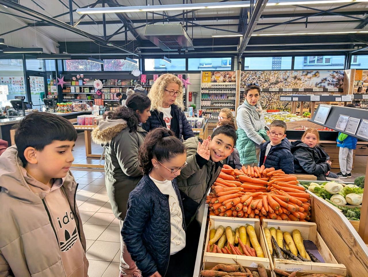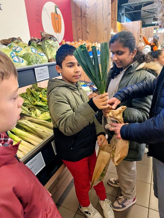 À l'occasion de la semaine du goût, les élèves du dispositif ULIS sont allés visiter le magasin "Jacoulot primeurs" à Morteau. Mme Jacoulot nous a fait découvrir le fonctionnement et l'organisation du magasin et des réserves ainsi que différents métiers existants dans son entreprise. Nous avons également choisi et acheté des légumes pour préparer une soupe. Ce fut un beau moment d'échange dans la bonne humeur et nous remercions Mme Jacoulot pour son accueil et sa disponibilité!